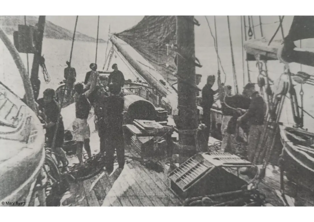 In 1941 the County Badge Experimental Committee was formed, the Gordonstoun schooner Prince Louis sailed from Hopeman to Aberdovey (inspiring a novel called Venturer, Top Secret) and additional staff were found. Lawrence Holt, whose company owned the Blue Funnel Line, was concerned that many young seamen were surviving attacked ships during the war, only to die through a lack of survival skills. He asked Kurt Hahn and HMS Conway to come together to pool their educational experiences. Thus, The Aberdovey Sea School was formed with the financial, staffing and vocational support of the Blue Funnel Line. The first Outward Bound course commenced in October 1942, with a previous Gordonstoun staff member, Bobby Chew, seconded from the Army as Housemaster.