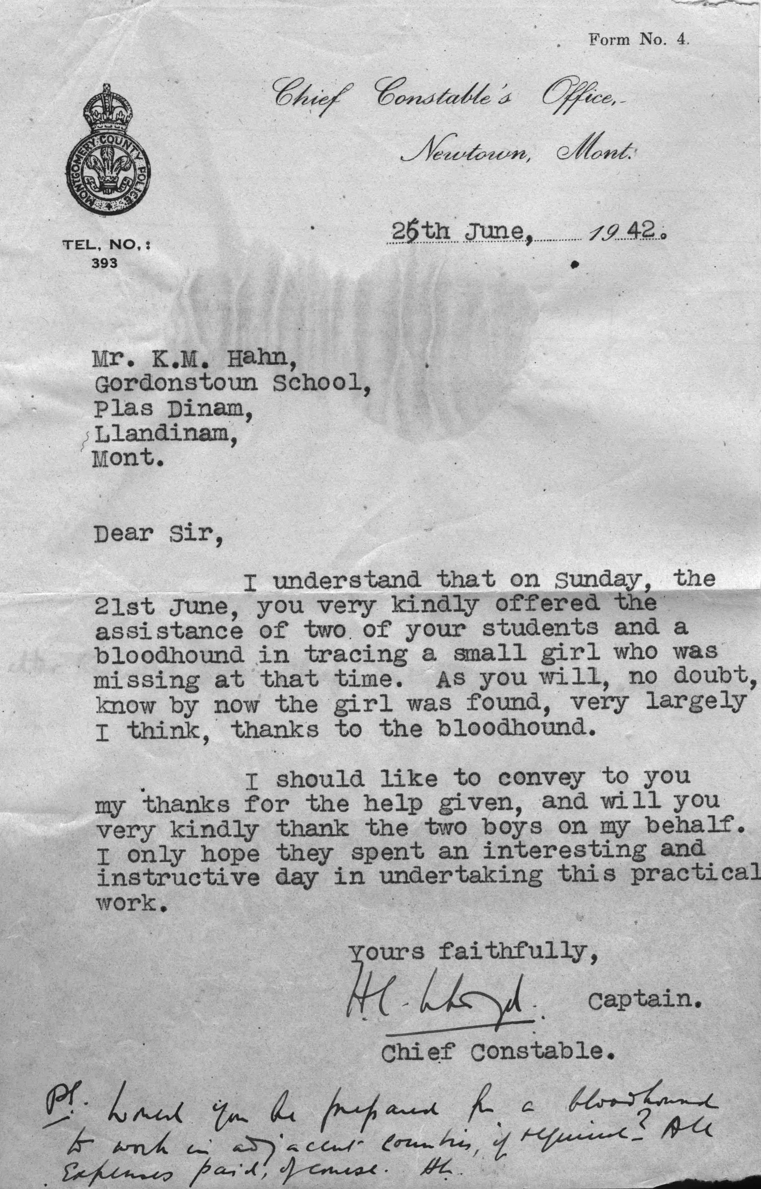 The local Welsh community were soon placated with the arrival of a willing force of boys that helped the farmers with hay making and harvest and fought fires. They were welcomed into the local Home Guard (despite the Moray section being doubtful of them), set up an Air Training Corps (ATC), continued Watchers (Coastguard in Moray) and used the school Bloodhounds to rescue locals on a few occasions.